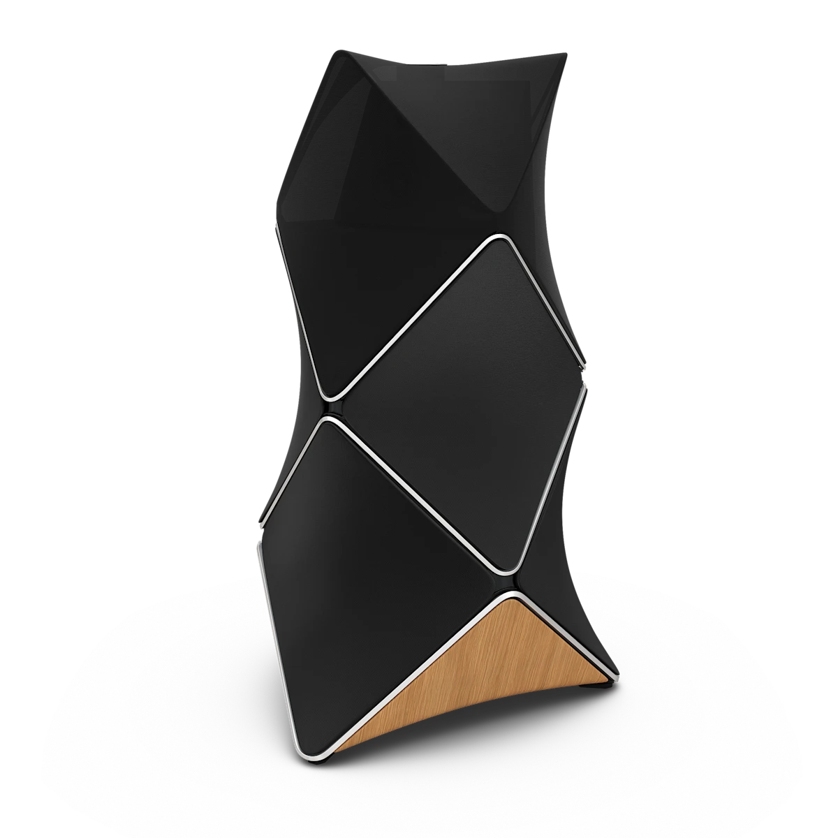 Shaped to optimize performance, Beolab 90 has been carefully engineered for the best possible sound every time. The bold design is based on a complex aluminum cabinet with a rock-solid structure, yet its curved wooden base and fabric sails create an aura of lightness.