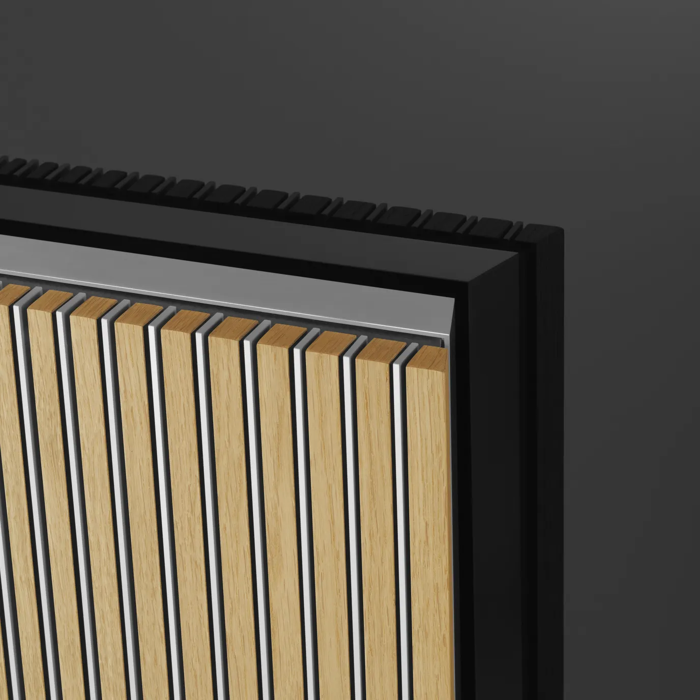 Luxury woods. Textured fabrics. Aluminium detailling. All are brought together to chime with your screen. From light oak to grey mélange, choose what resonates with you – and let your beautifully covered speakers reveal spellbinding sound.